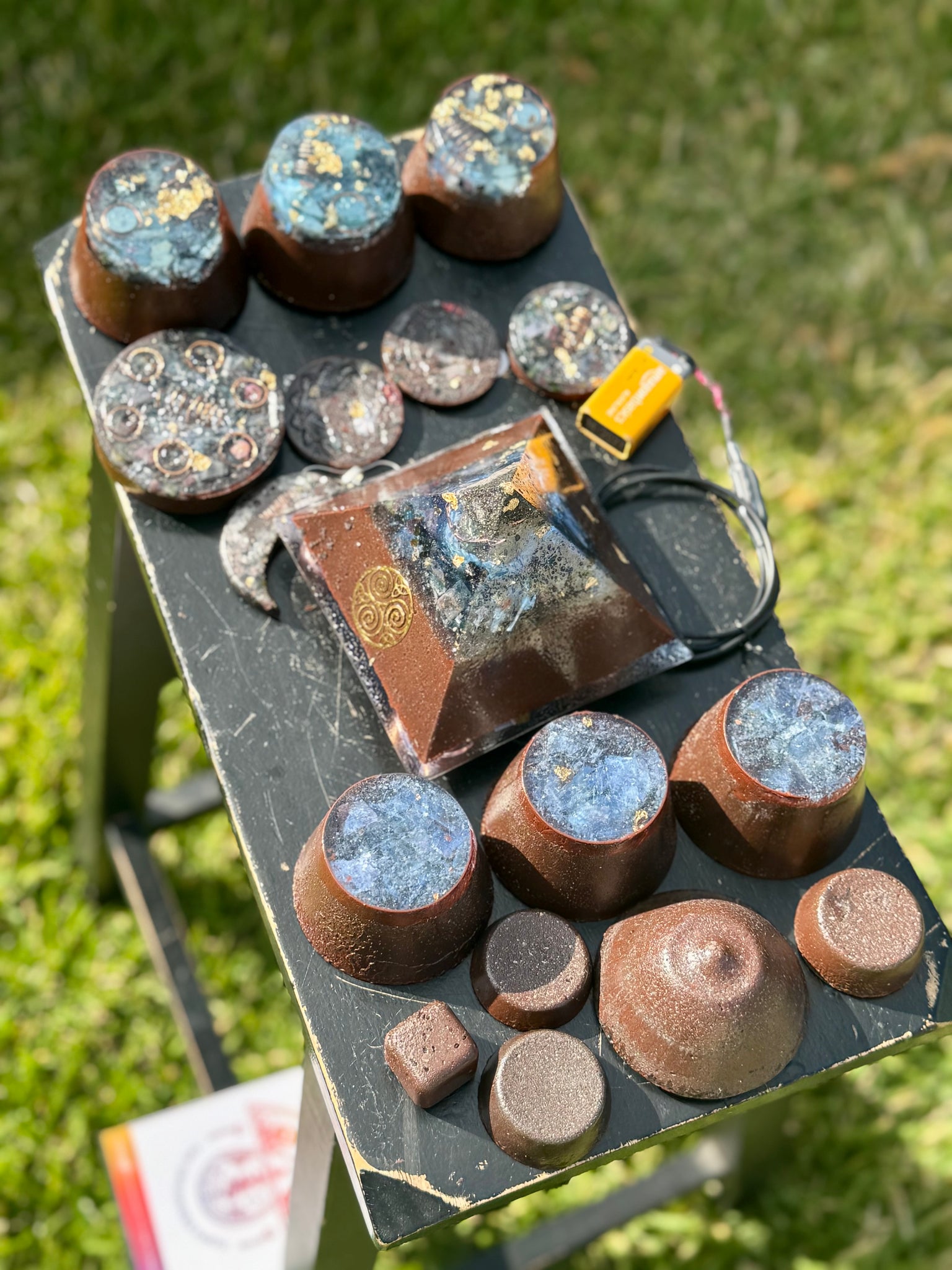-solid foundational pyramid for the living room. Great spot is in indirect sunlight on the floor if possible. Can also shift this to go under your bed at night to assist with REM sleep & lucid dreaming. Comes with 9v battery. It’s recommended to get rechargeable 9V batteries. ($299 value)