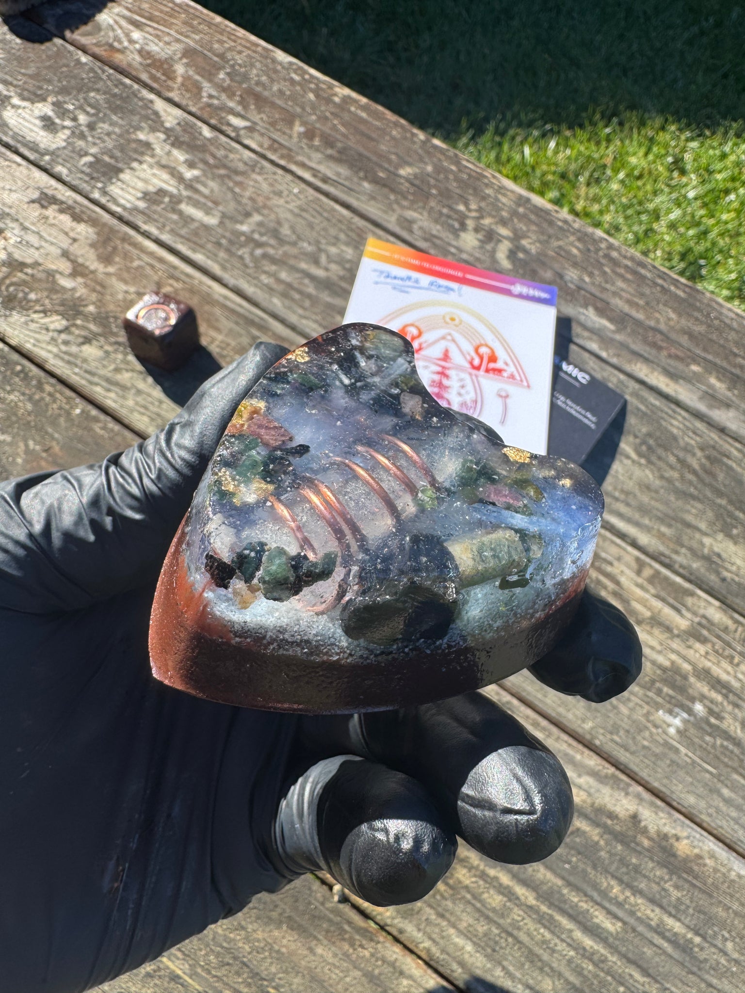 • One small/medium copper-coiled Lemurian seed or laser quartz in the middle